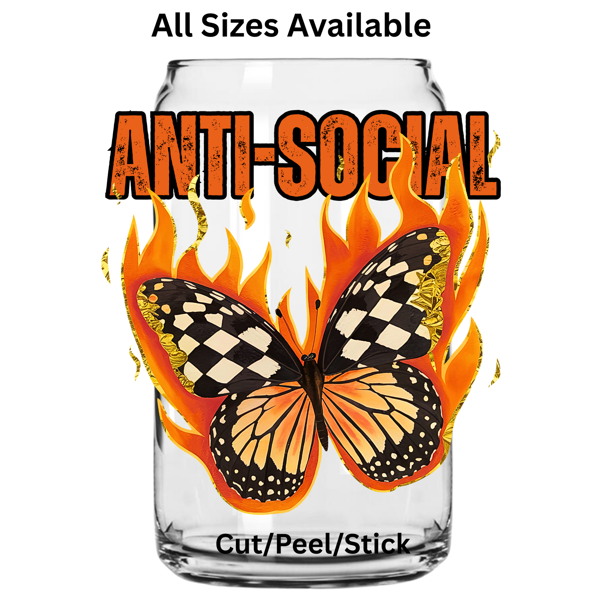 Anti-social Flaming Butterfly UV DTF Decal