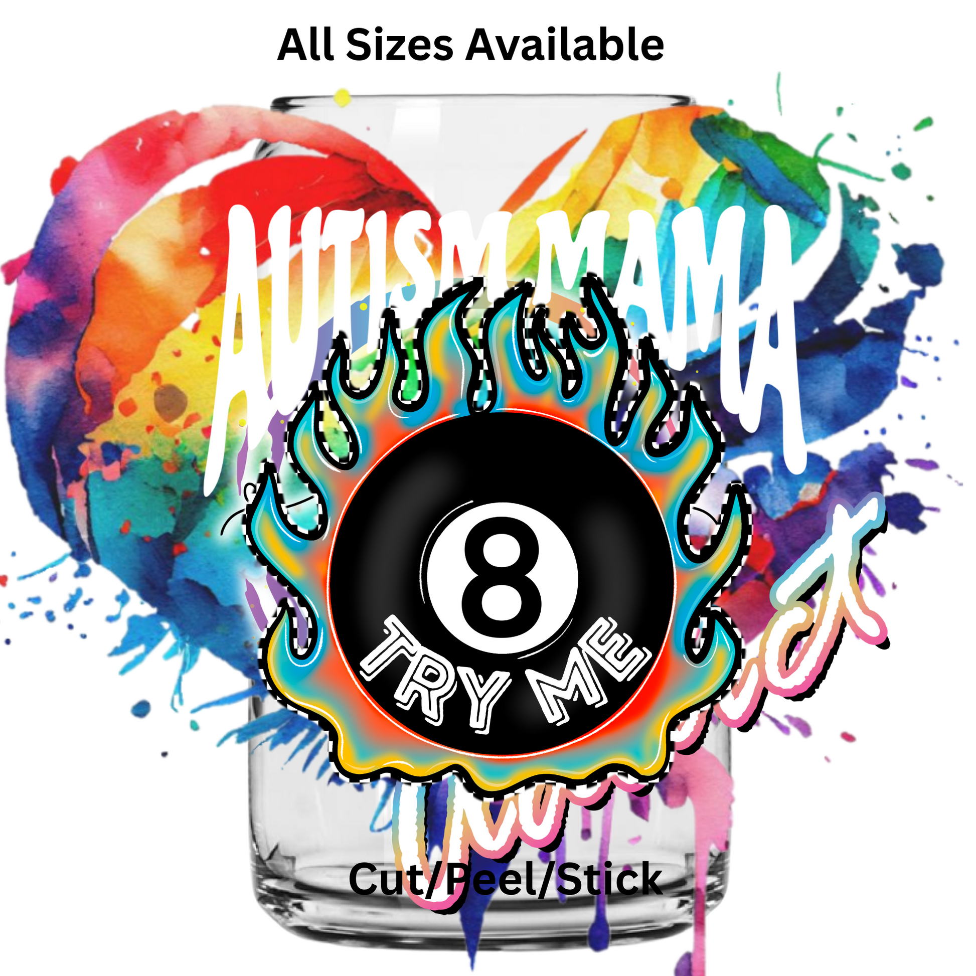 Autism Mama Try me white writing UV DTF Decal UV DTF Decal