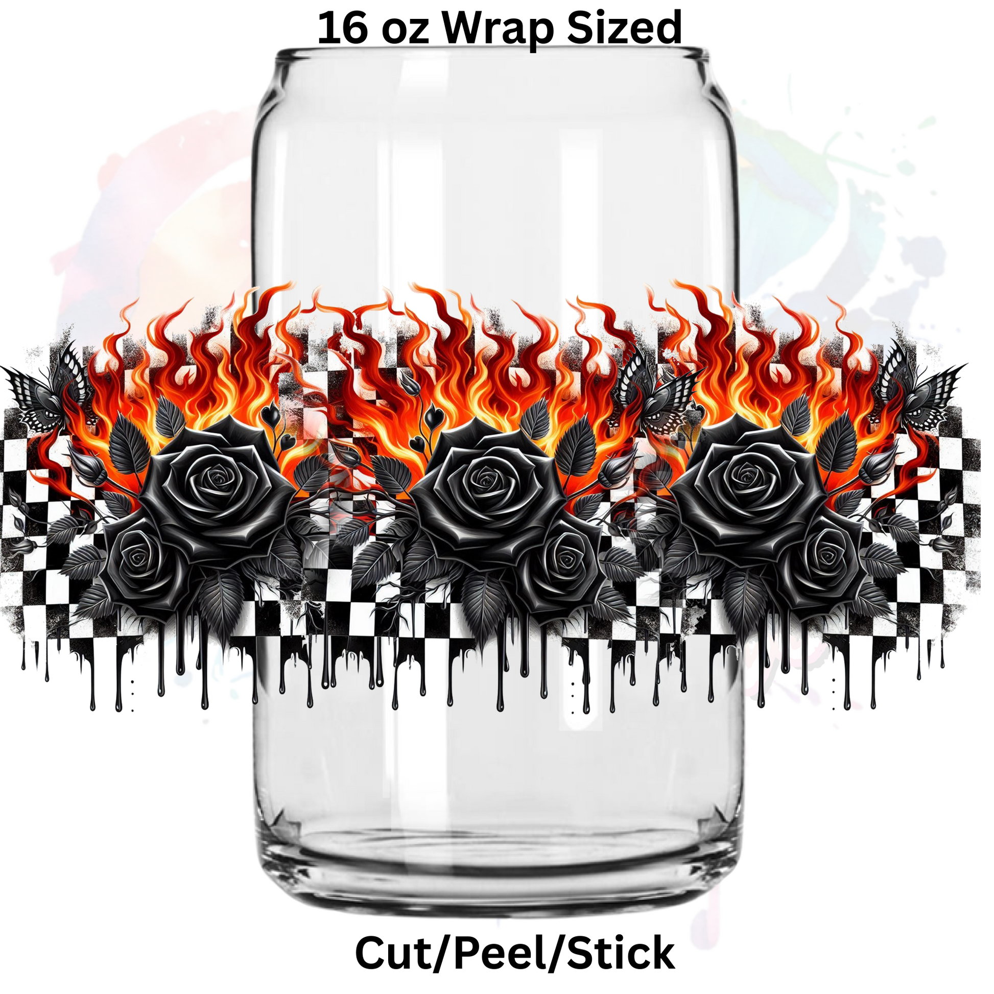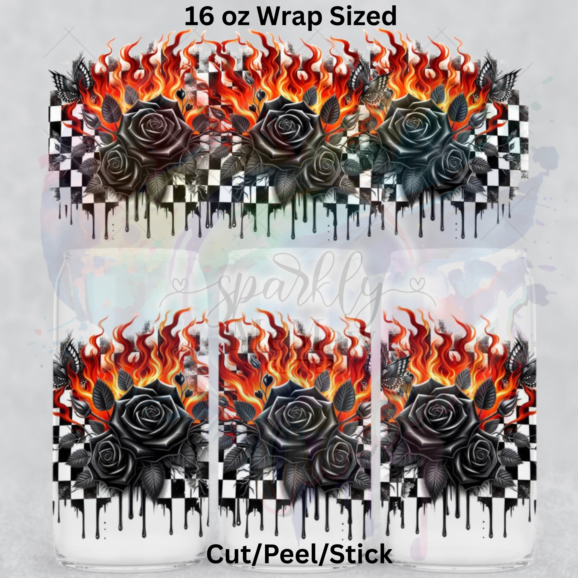 Black Roses and Flames UV DTF 16 Oz wrap