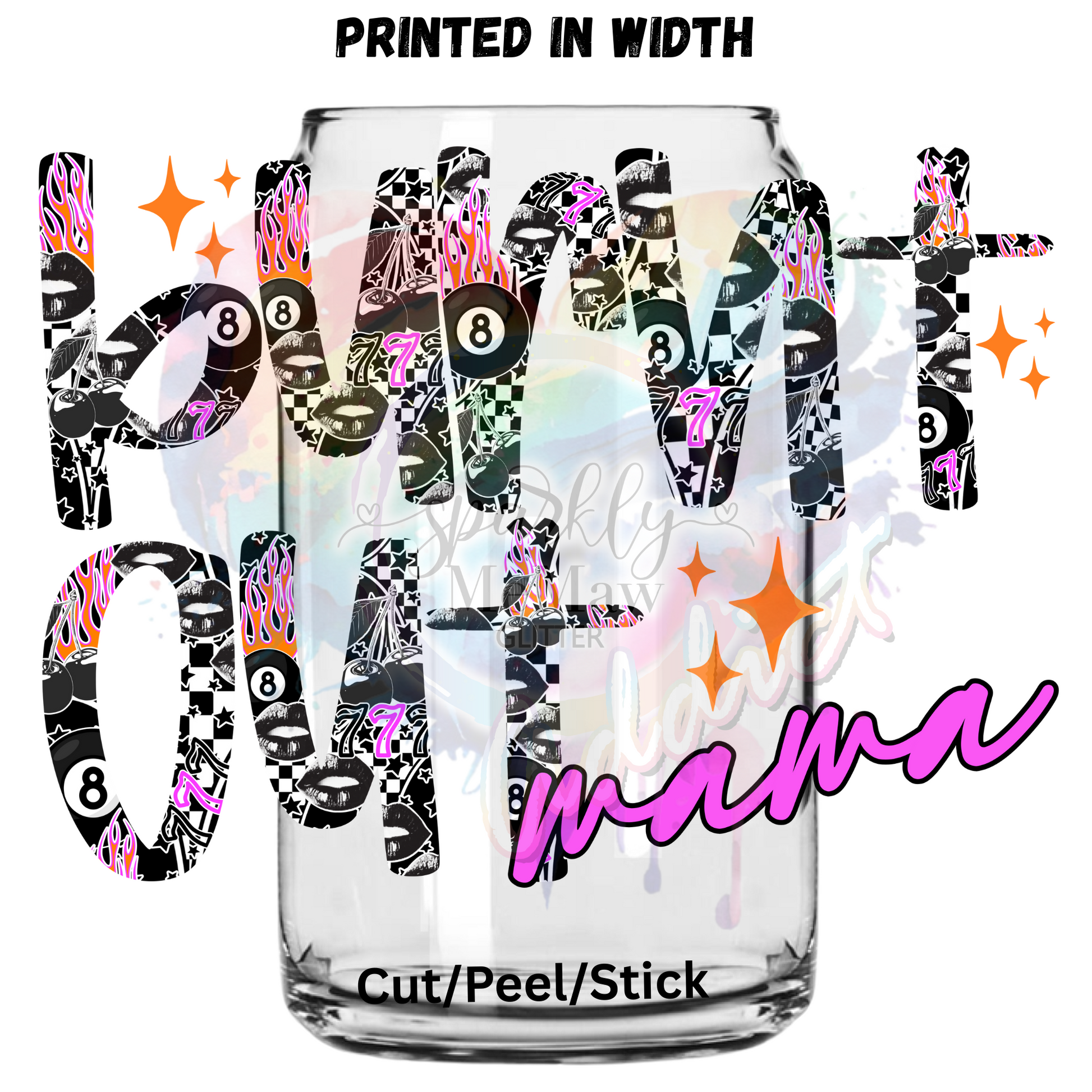 Burnt out mama UV DTF Decal (printed in width)
