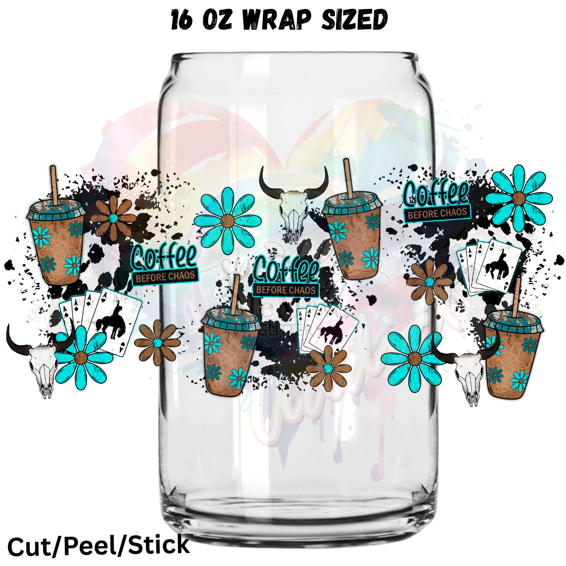 Coffee Before chaos 1 UV DTF 16 Oz wrap