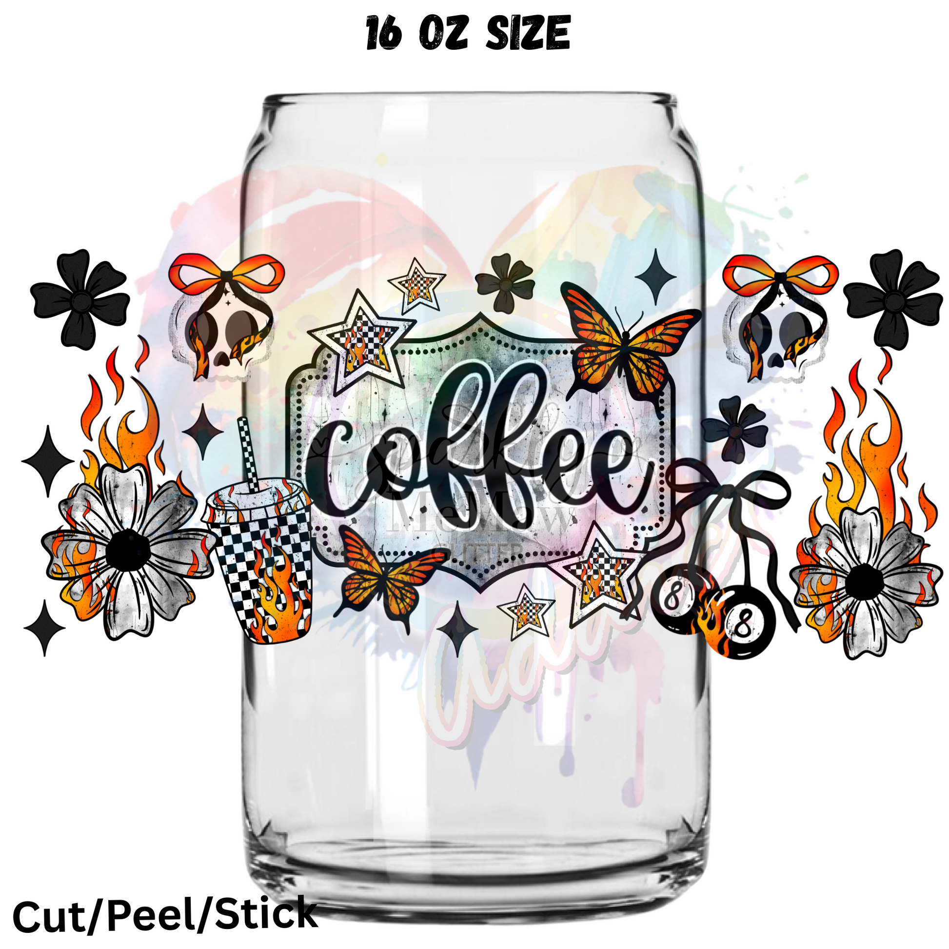 Coffee Butterfly Flames UV DTF 16 Oz wrap