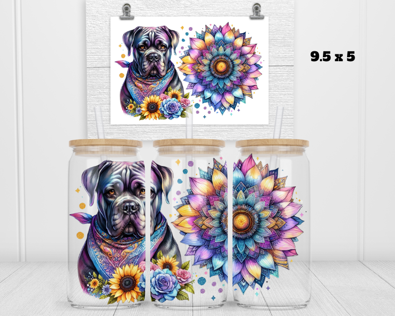 Dog Sunflower Mandala UV DTF Wrap (decals)