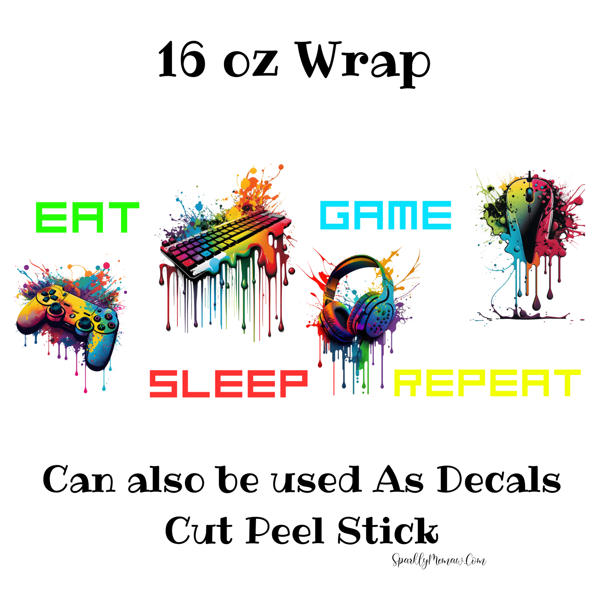 Eat Game Sleep Repeat UV DTF Decal Set (Wrap)