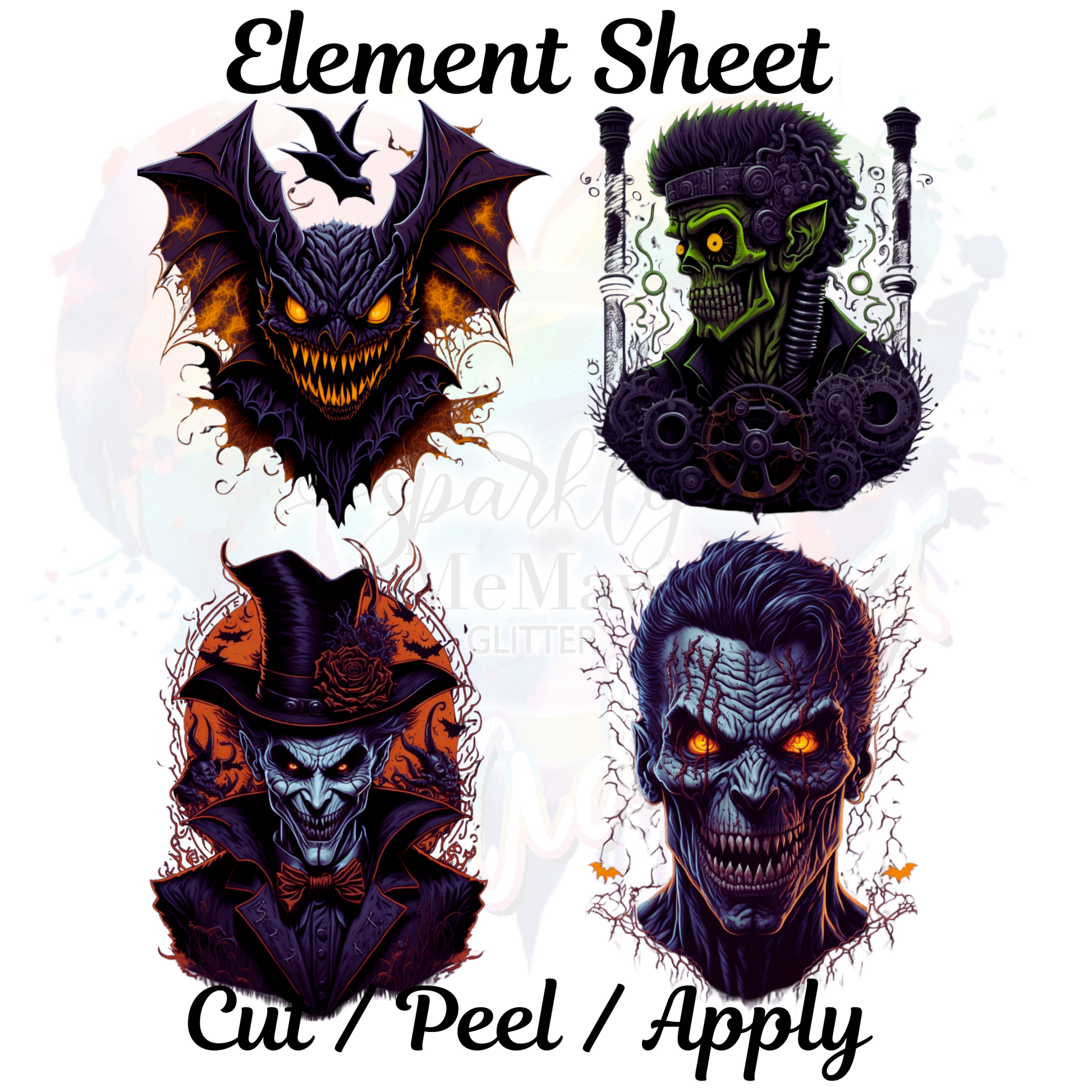 Evil Faces UV DTF Element Sheet 8x9 inches