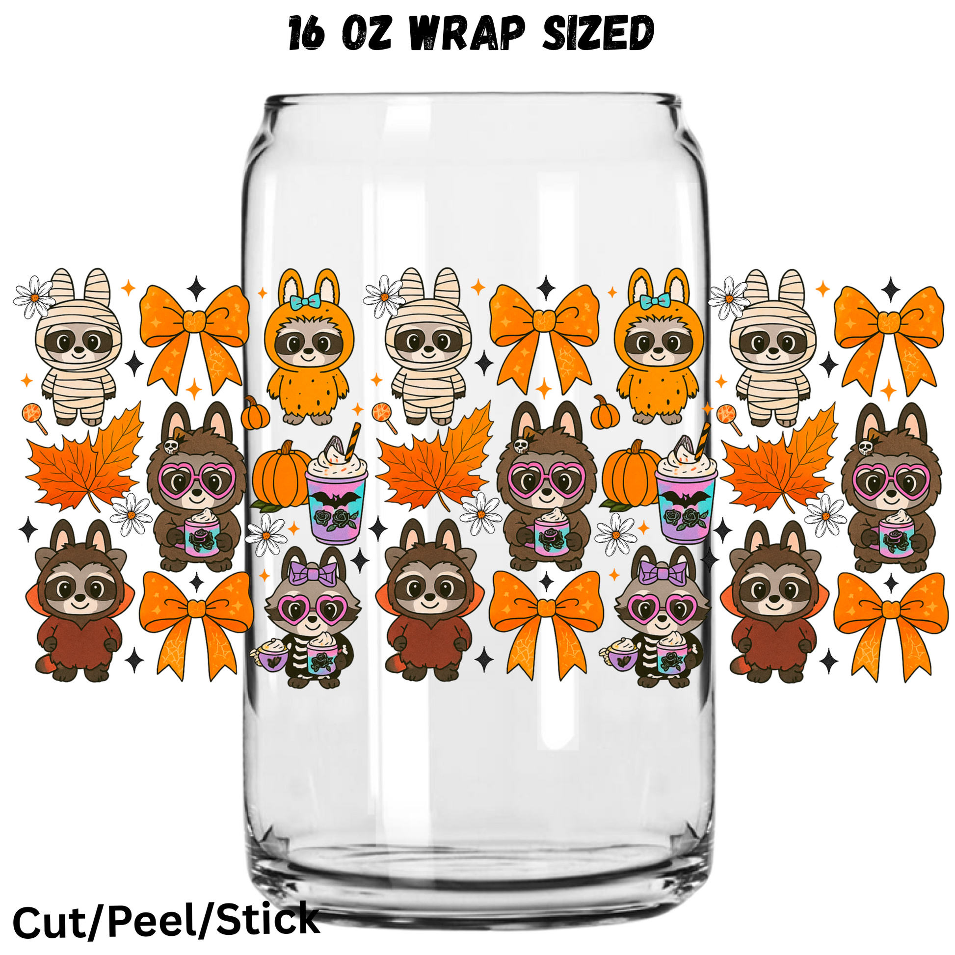 Fall Bow Leaves Pumpkin UV DTF 16 Oz wrap
