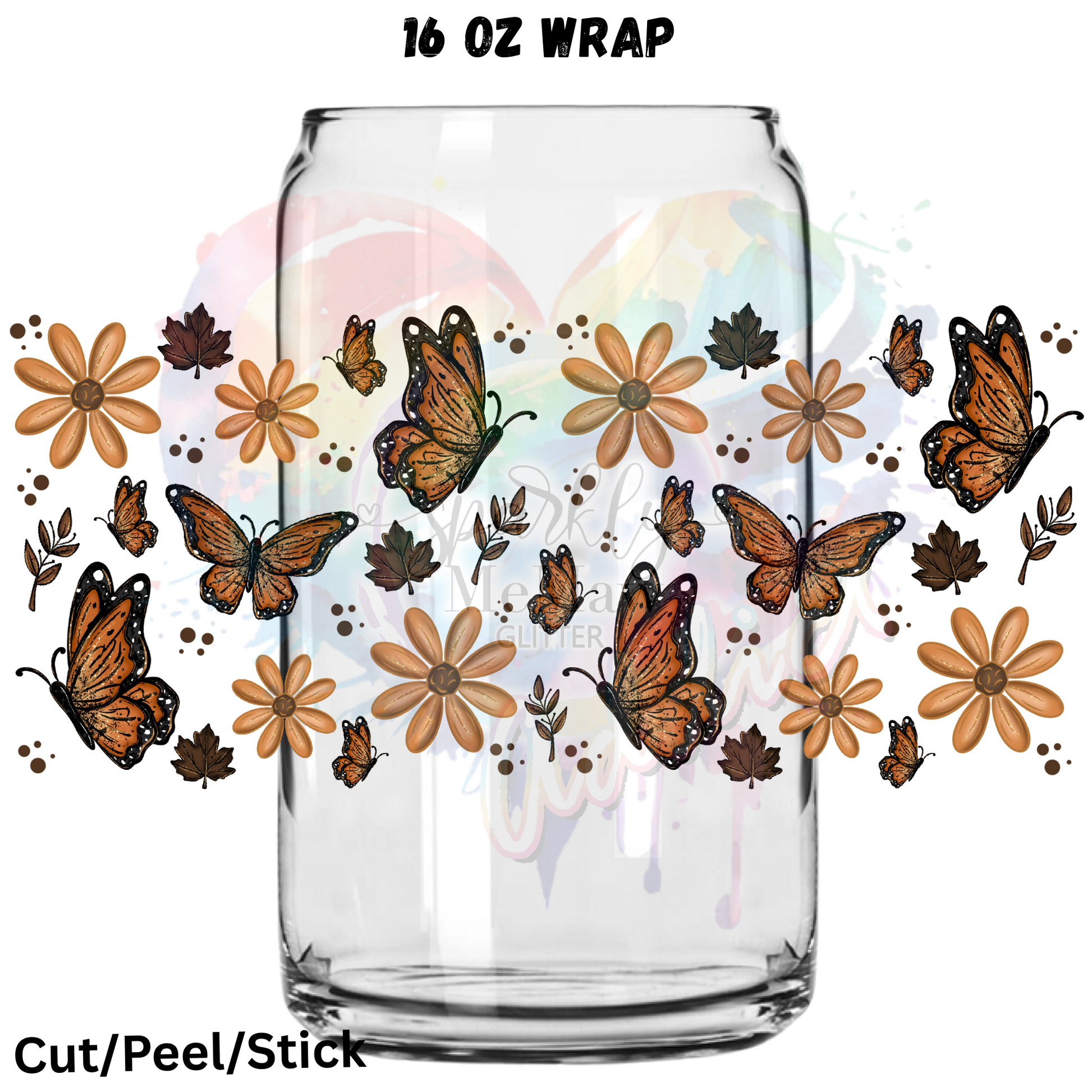 Fall Butterflies and flowers UV DTF 16 Oz wrap