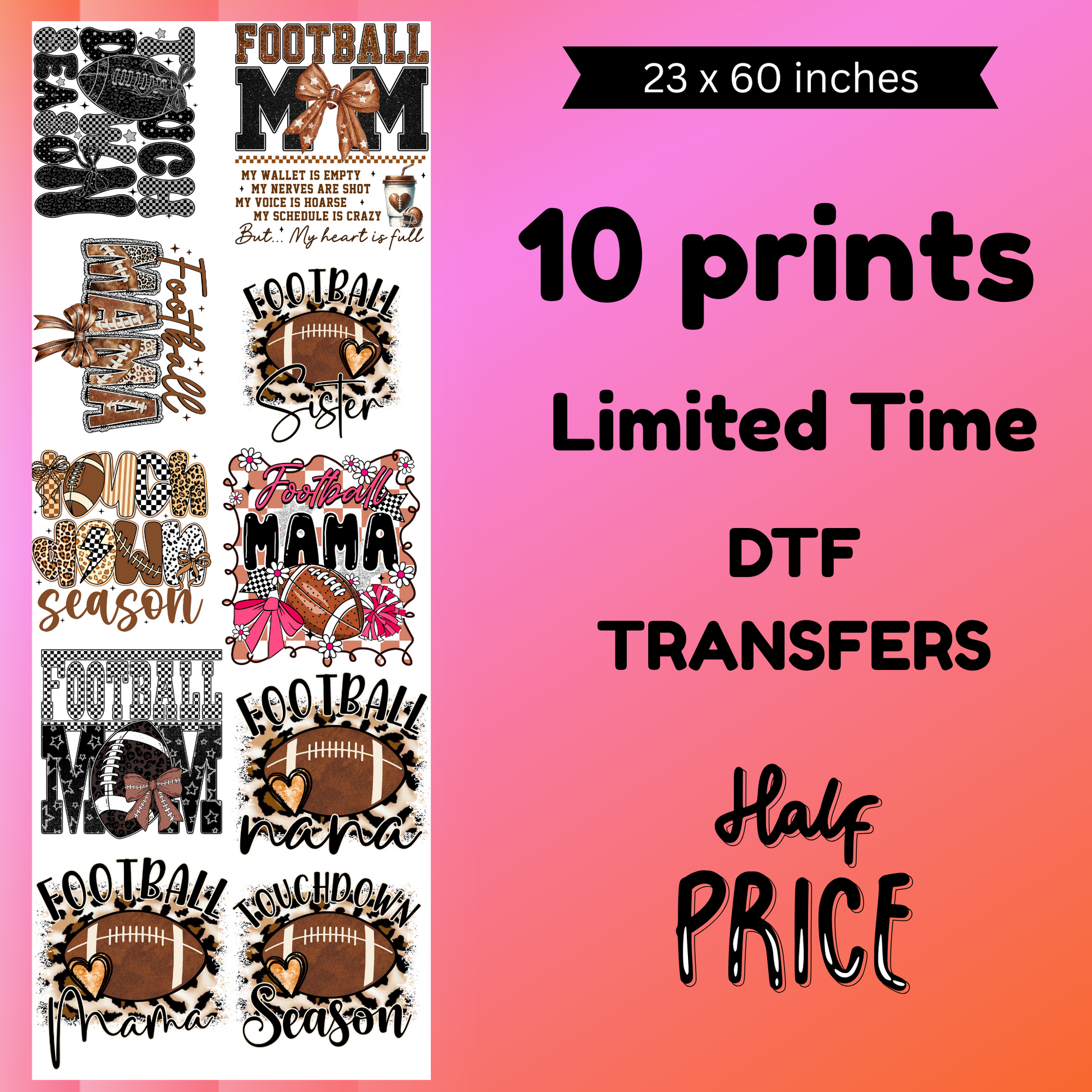 Football Season 1 (For Fabrics Only) Gang Sheet 23x60 inches