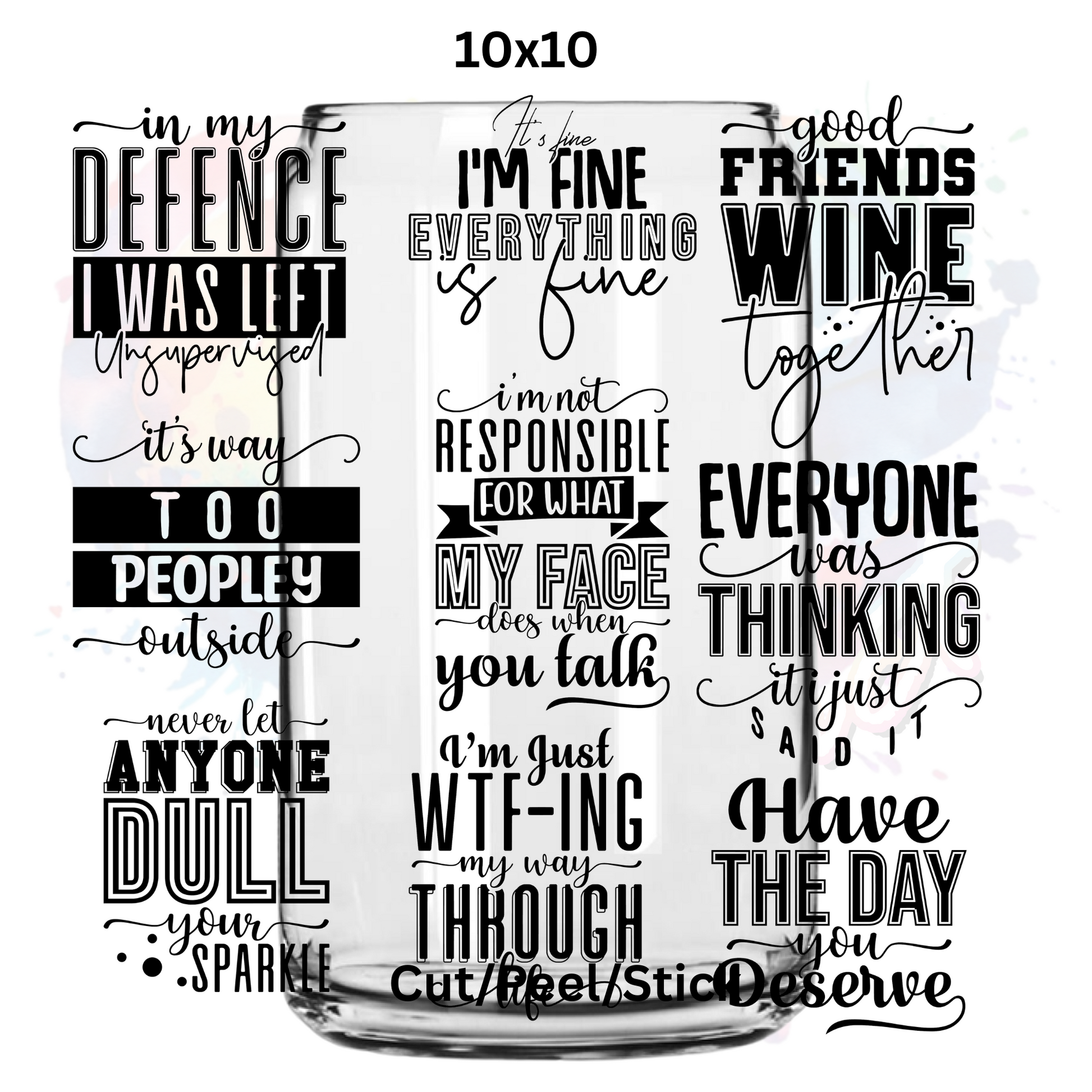 Funny Sarcastic Word sheet 203 UV DTF Sheet 10x10