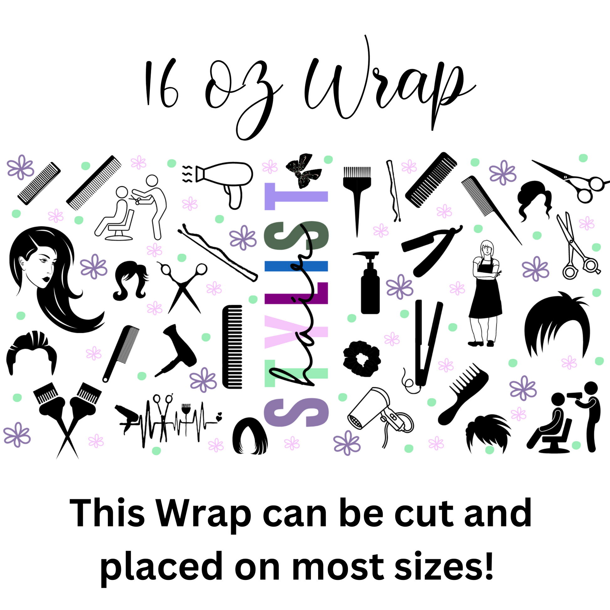 Hair Stylist UV DTF 16 oz Wrap (Decal Set)
