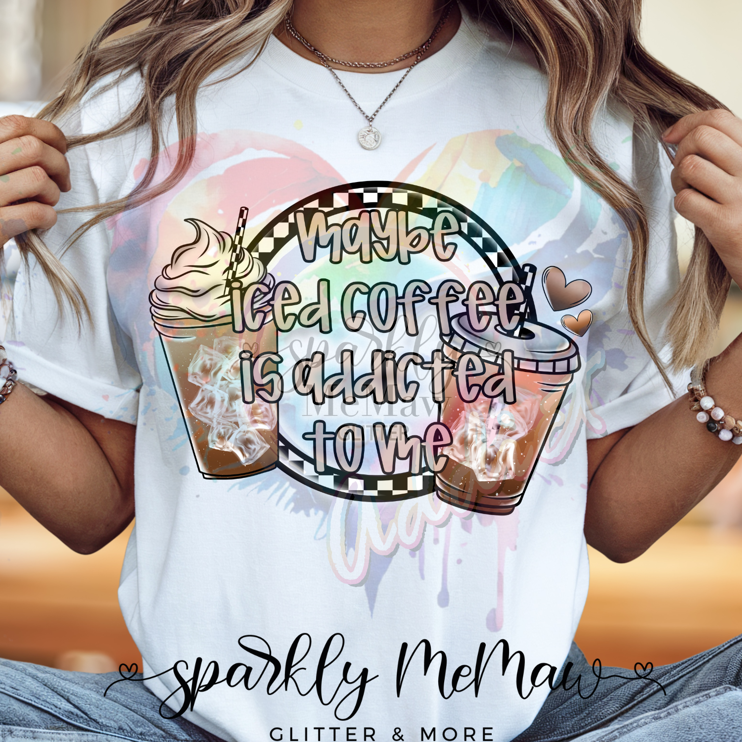 Maybe Iced coffee is addicted to me Ready to Press DTF Transfer (Fabrics only)