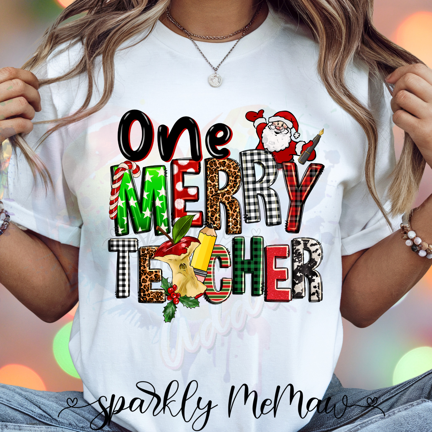 One Merry Teacher Ready to Press DTF Transfer (Fabrics only)