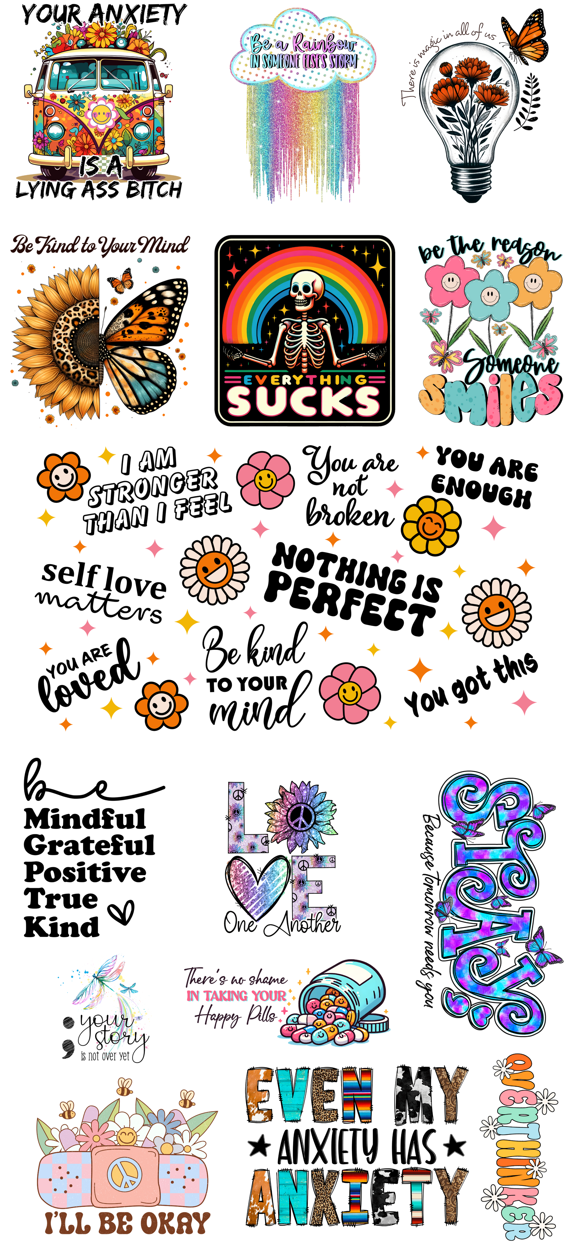 Pre Made "Mental Health" 11 x 24 inch UV DTF Gang Sheet