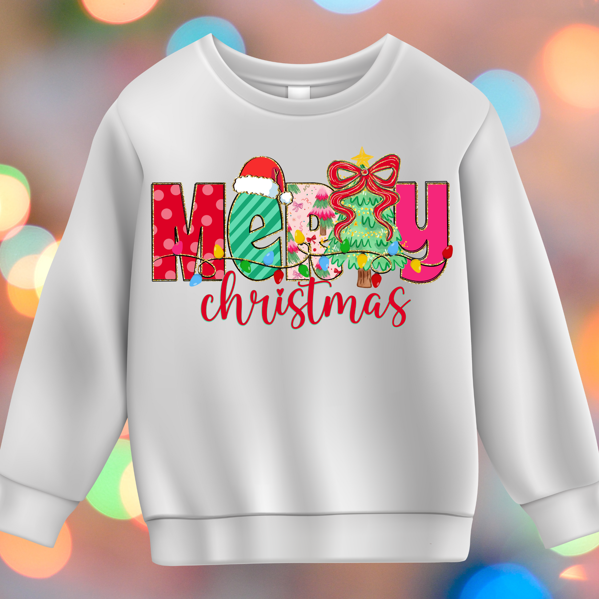 preppy merry christmas (1) DTF Transfer (Fabrics)