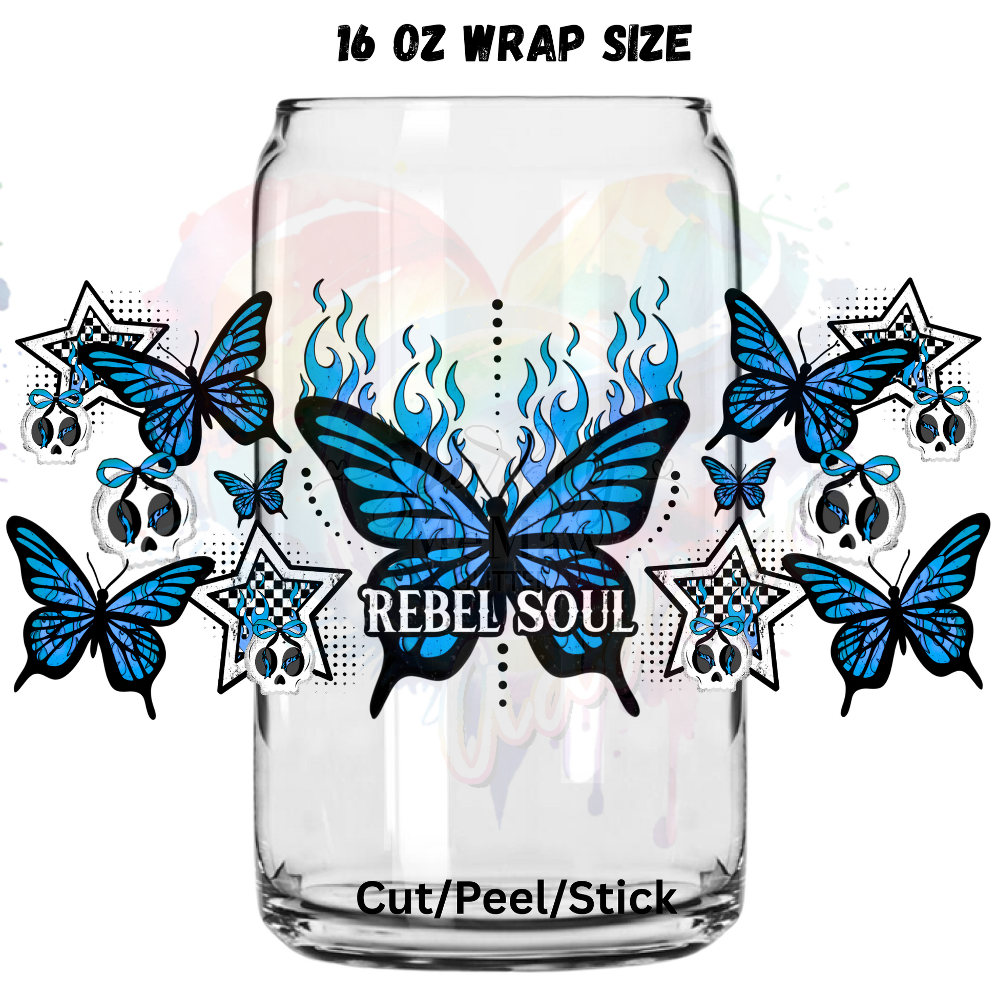 Rebel Soul Blue Butterfly UV DTF 16 Oz wrap