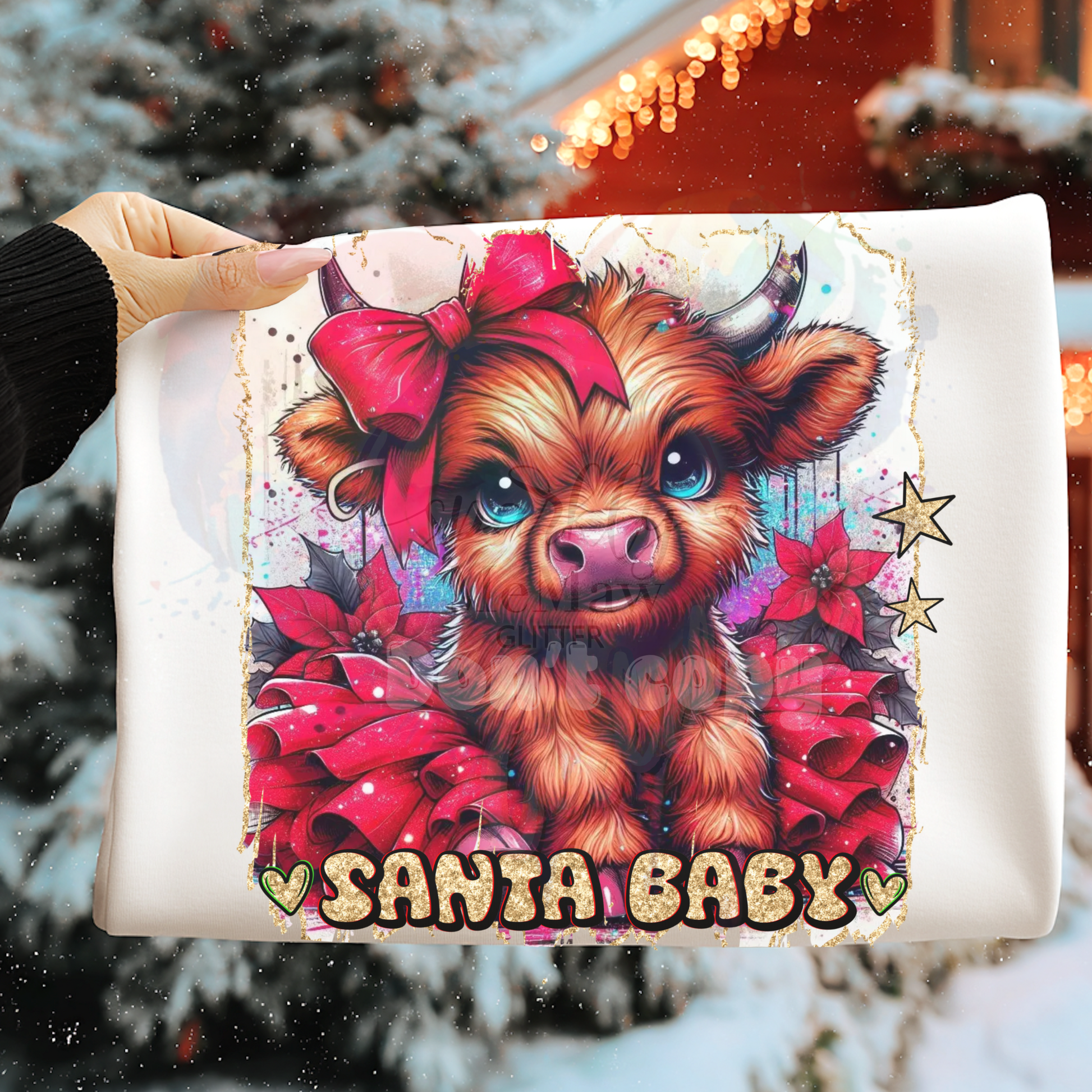 Santa Baby Cow Ready to Press DTF Transfer (Fabrics only)