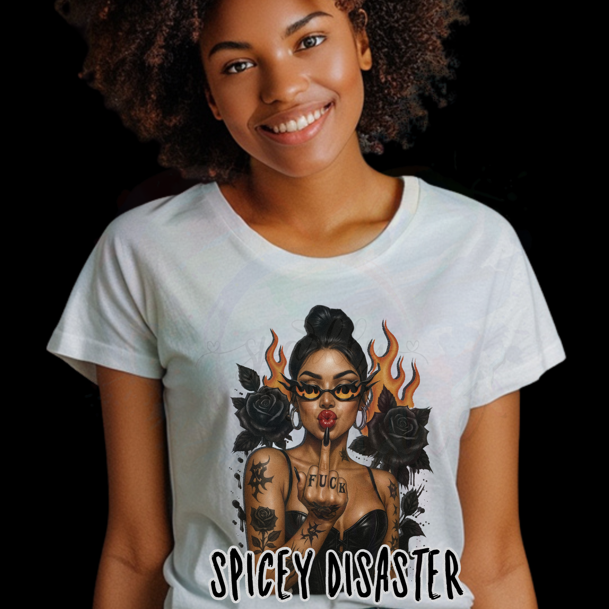 Spicey Disaster 1 Ready to Press DTF Transfer (Fabrics only)