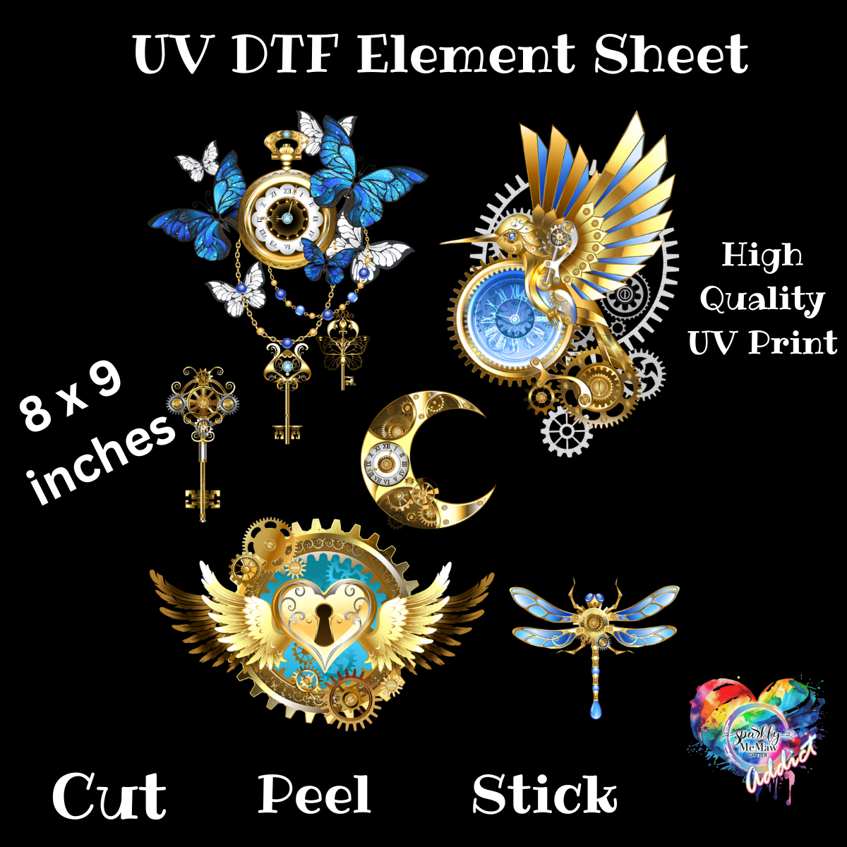 SteamPunk Birds N butterflies UV DTF Element Sheet