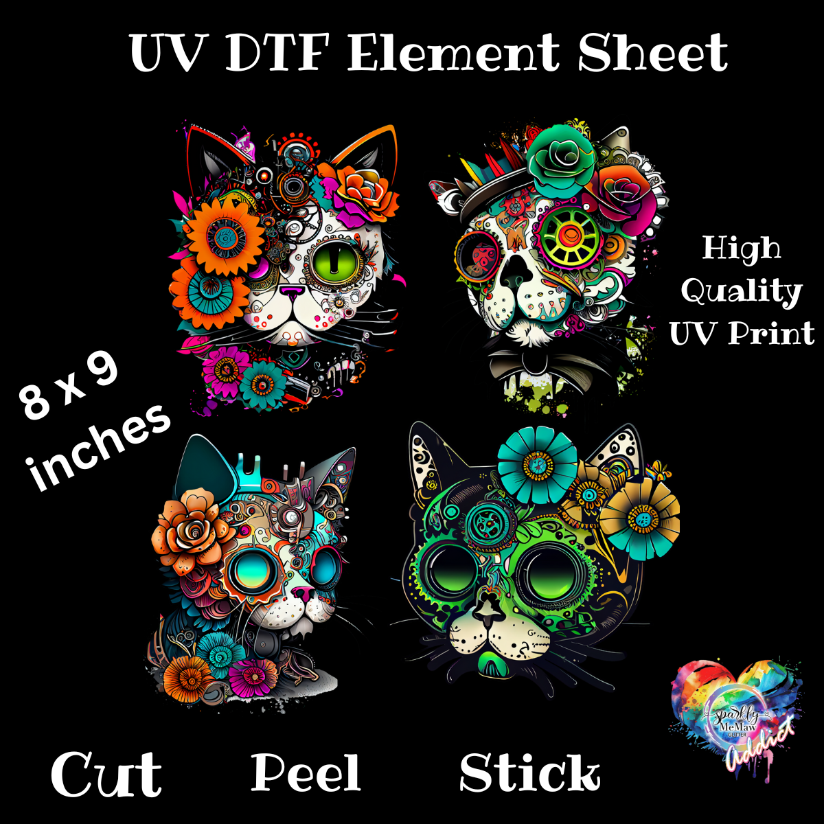 SteamPunk Cats UV DTF Element Sheet