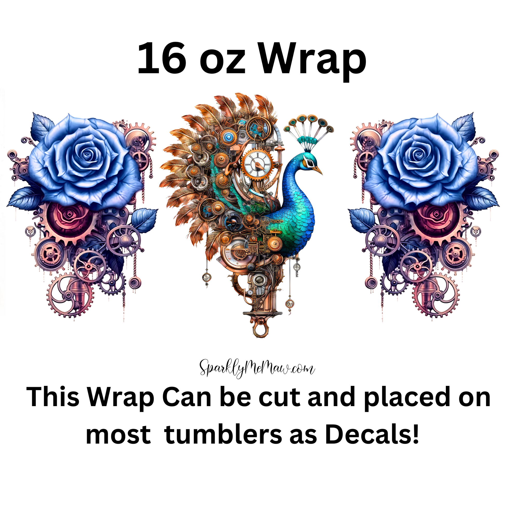 SteamPunk Peacock UV DTF 16 oz Wrap