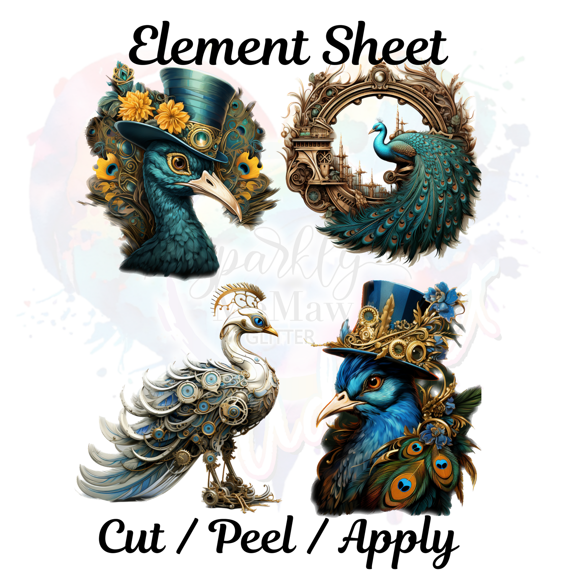 Steampunk Peacock UV DTF Element Sheet 8x9 inches