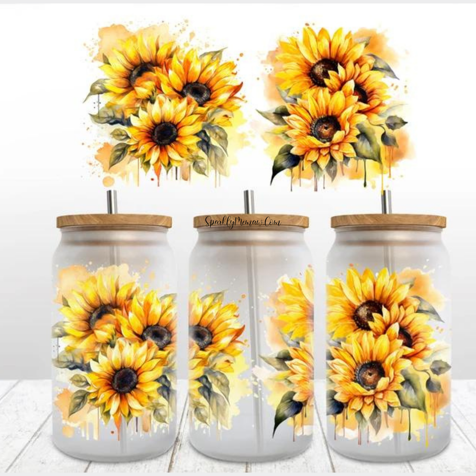 Sunflower Watercolor UV DTF Decal set (wrap)