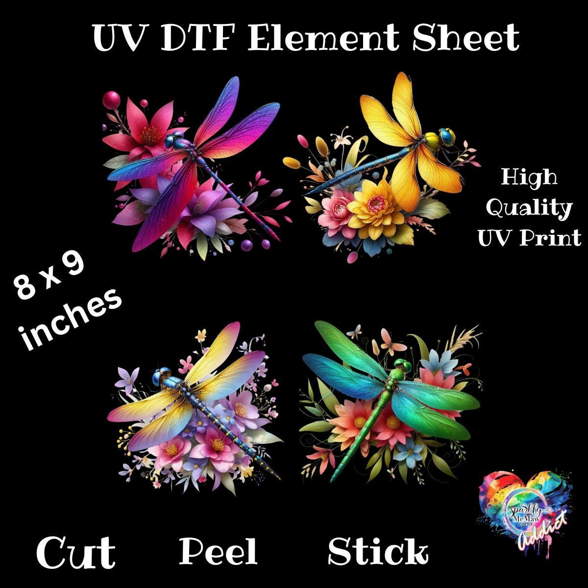 Vibrant DragonFlies UV DTF Element Sheet