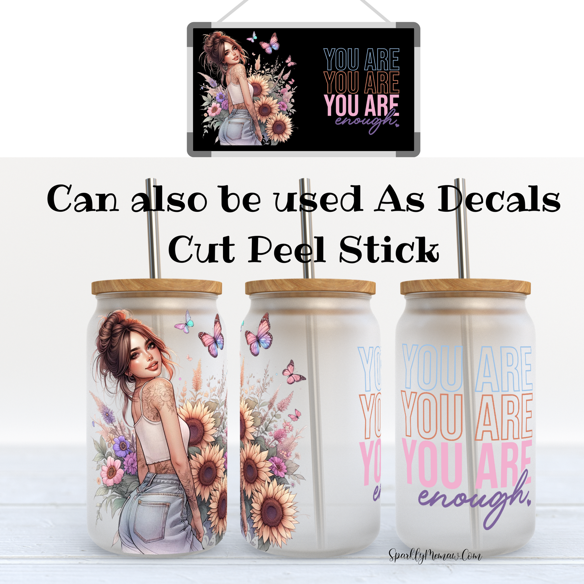 You Are enough Girl with Flowers uv DTF Wrap