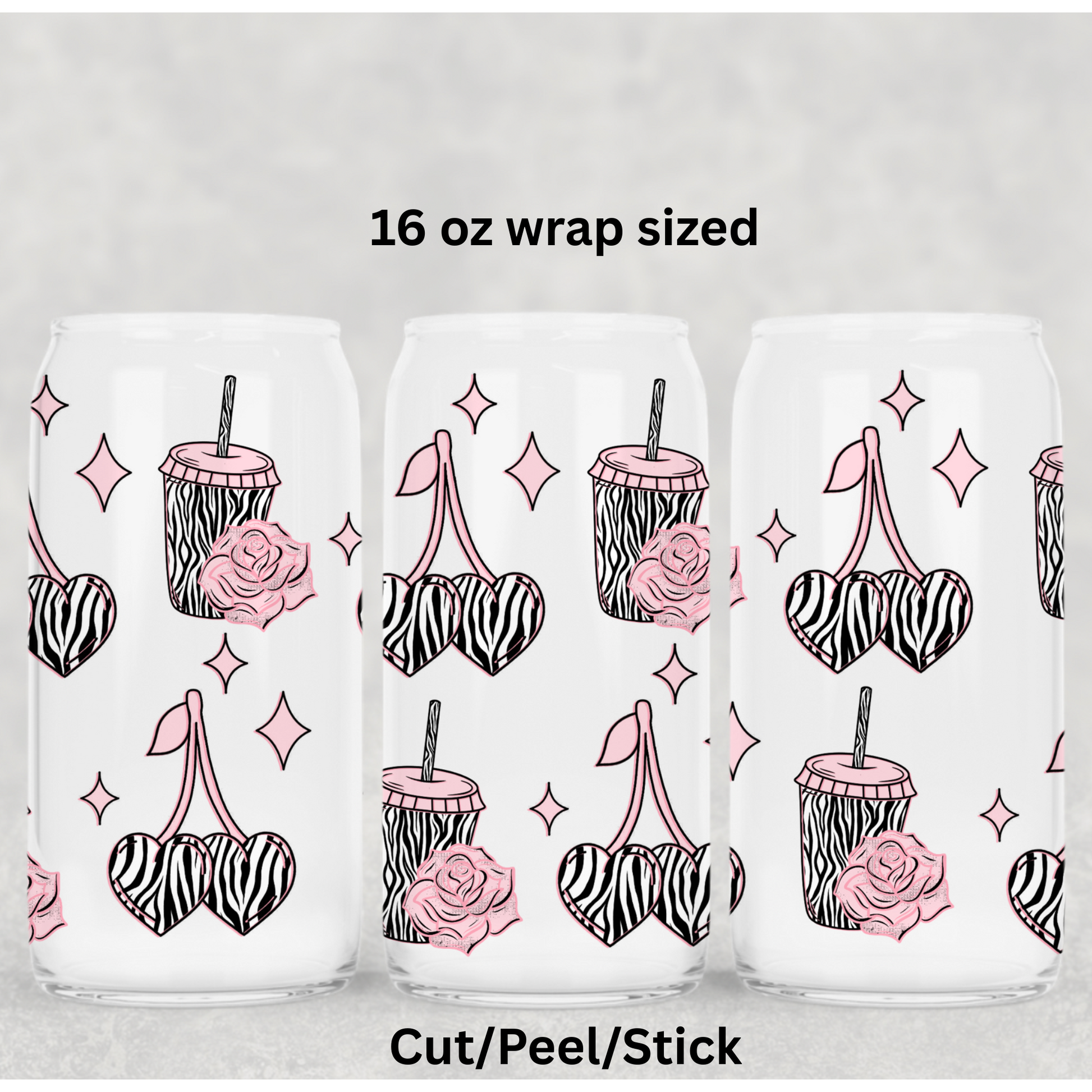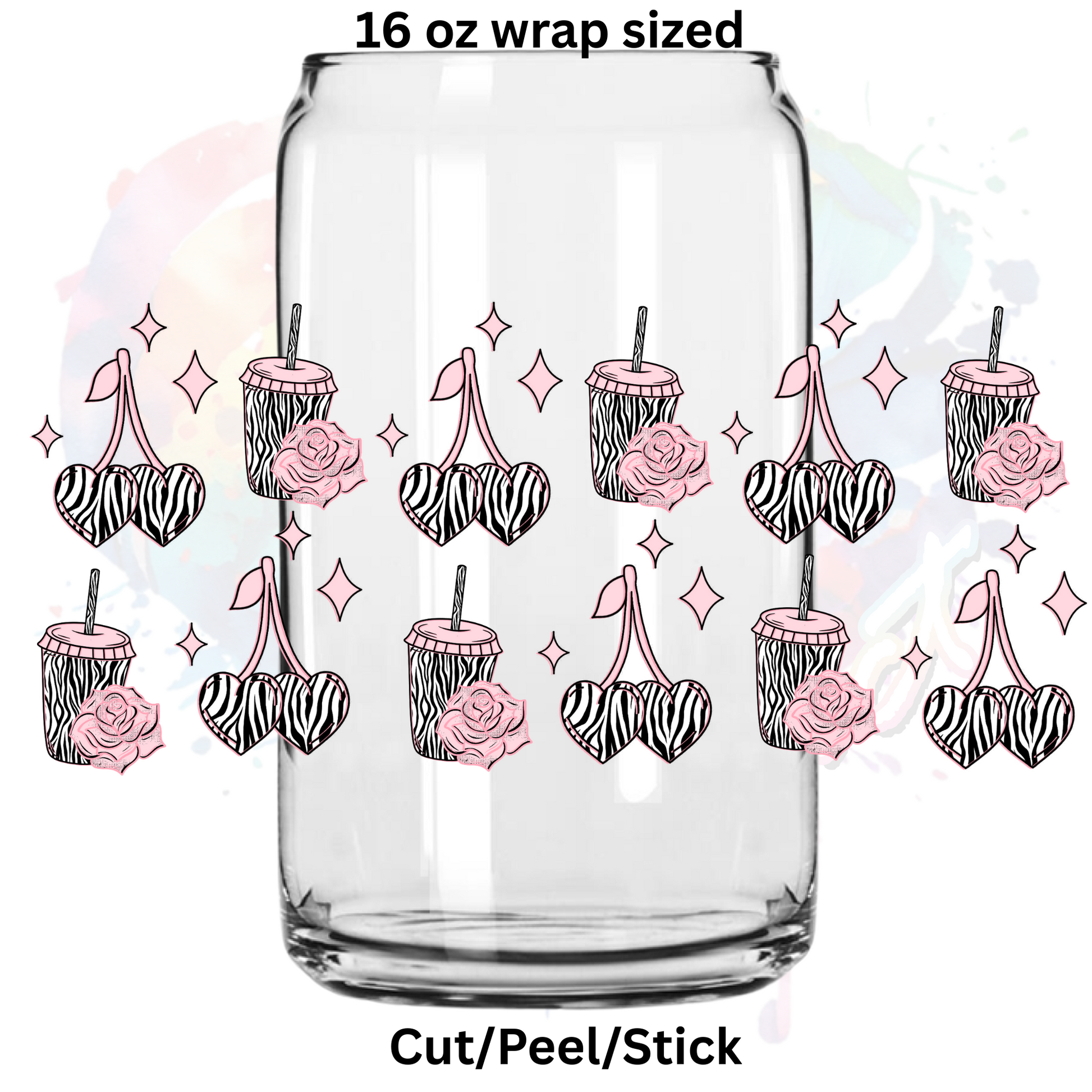 Zebra hearts and flowers UV DTF 16 Oz wrap